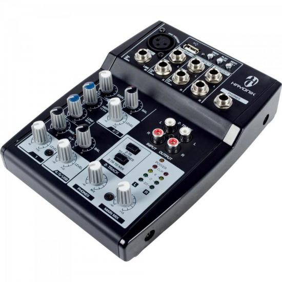 A mesa de som HMX-105 da HAYONIK apresenta uma equalização precisa com ajustes de LOW e HIGH para um som mais definido. Botões 2-Track para controle da entrada/saída RCA. Entrada USB para reprodução de MP3. Além de contar com um design compacto e leve para fácil transporte e seus canais são separados para fácil ajuste.